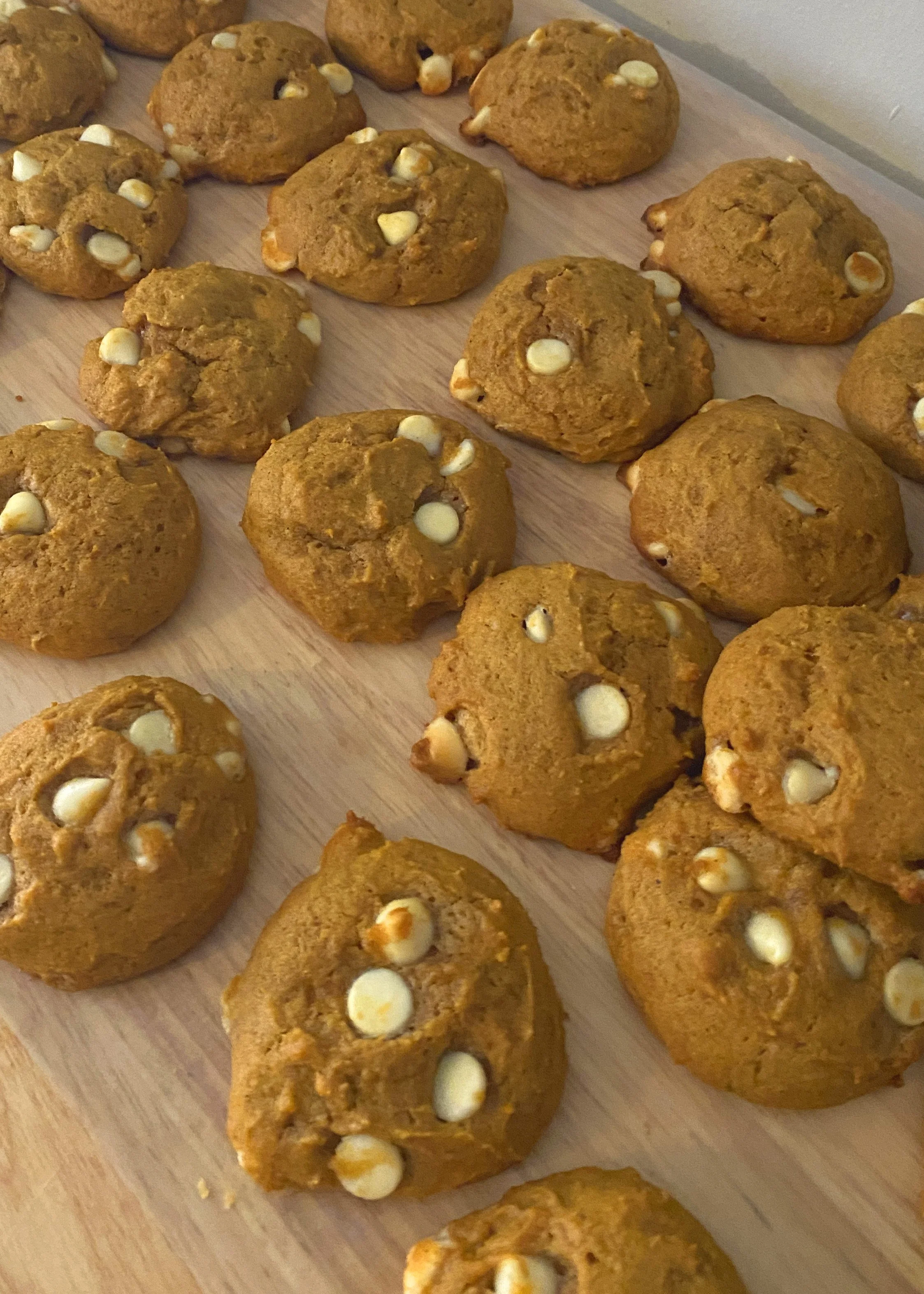Enjoy the perfect blend of pumpkin spice and white chocolate in these soft and chewy pumpkin white chocolate chip cookies.